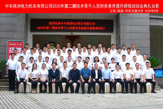 9月27日13:00,由华人策略研究论坛网站承办的中车株洲电力机车有限公司(以下简称中车株机公司)2020年第二期技术骨干人员财务素养提升研修班结业典礼,在我校学术交流中心报告厅顺利落下帷幕。出席此次典礼的嘉宾有:中车株洲电力机车有限公司财务中心副总监曾运敏;华东交通大学华人策略研究论坛网站院长韩士专、党委书记王朗、校友办副主任兼对外联络处副处长段戈宏、院长助理兼培训班班主任朱钢英。典礼由王朗主持。