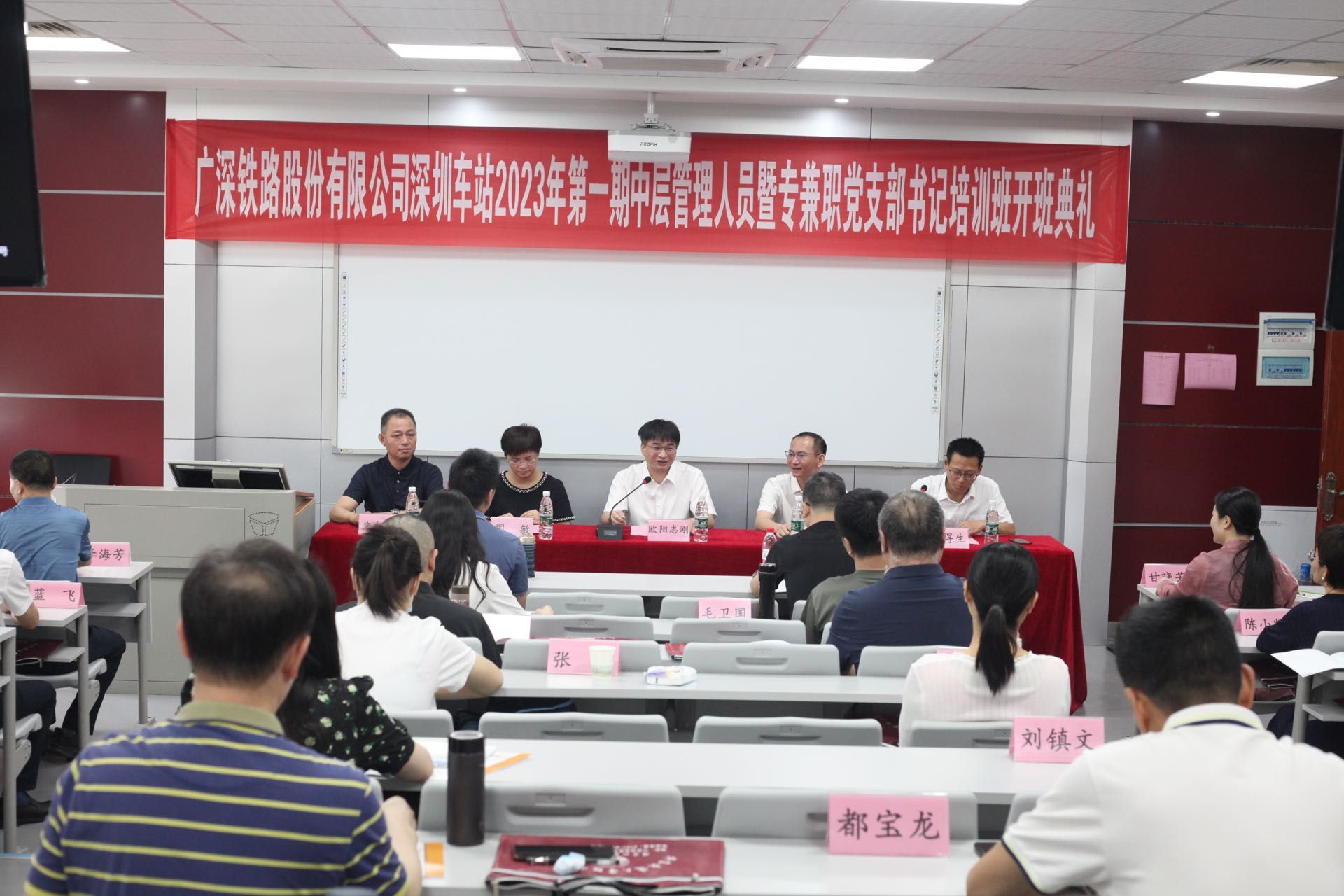 图1 广深铁路股份有限公司深圳车站2023年第一期中层管理人员暨专兼职党支部书记培训班开班典礼。