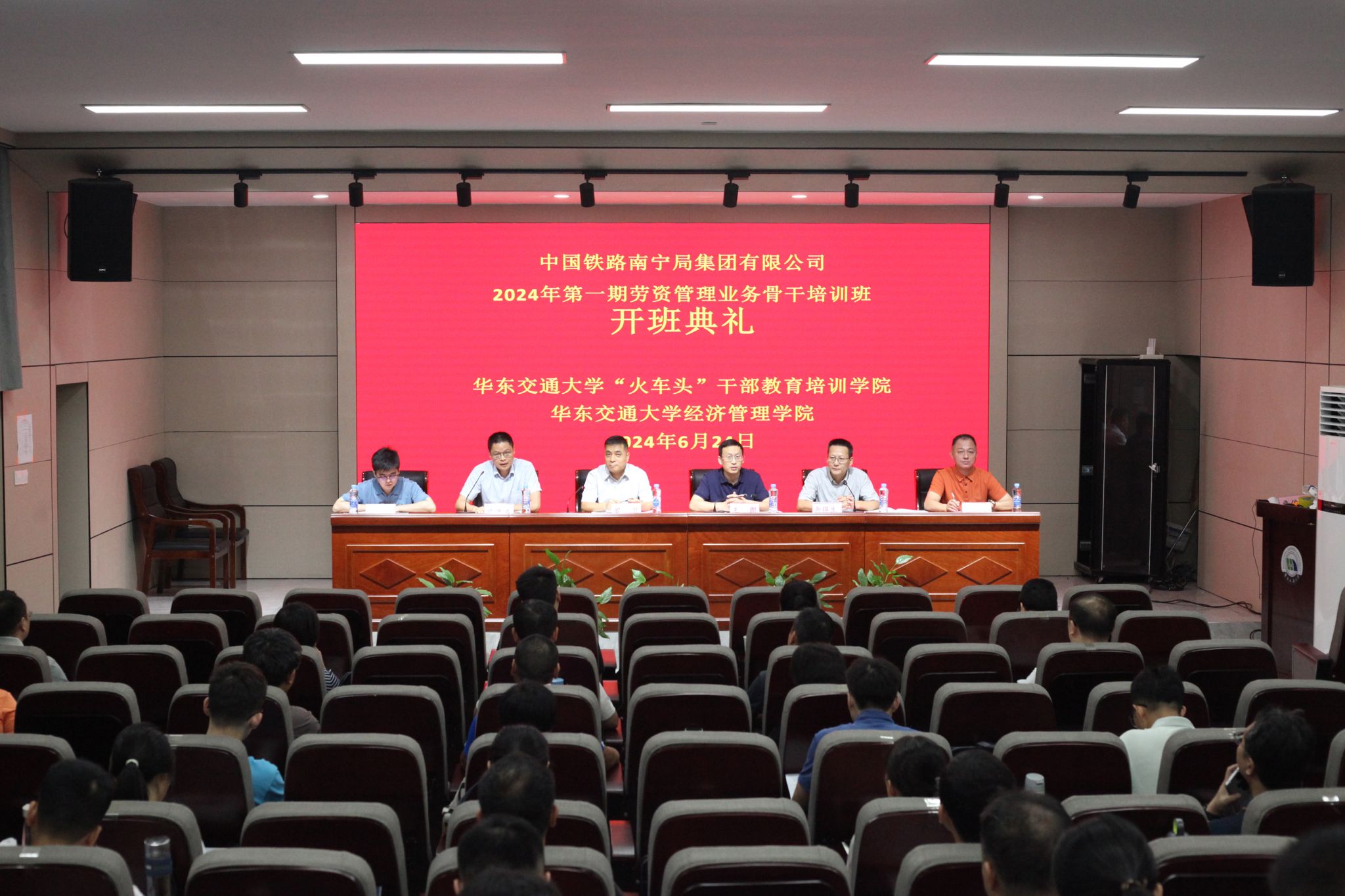 2024年6月24日,中国铁路南宁局集团有限公司2024年第一期劳资管理业务骨干培训班开班典礼在经管学院104多功能报告厅顺利举行。中国铁路南宁局集团有限公司劳卫部副主任罗卫,华东交通大学党校常务副校长“火车头”干部教育培训学院常务副院长王朗,对外联络处、校友办公室主任吴亮秦,我院党委书记余得生华人策略研究论坛网站管理系主任万金华人策略研究论坛网站培训班主任朱钢英出席。