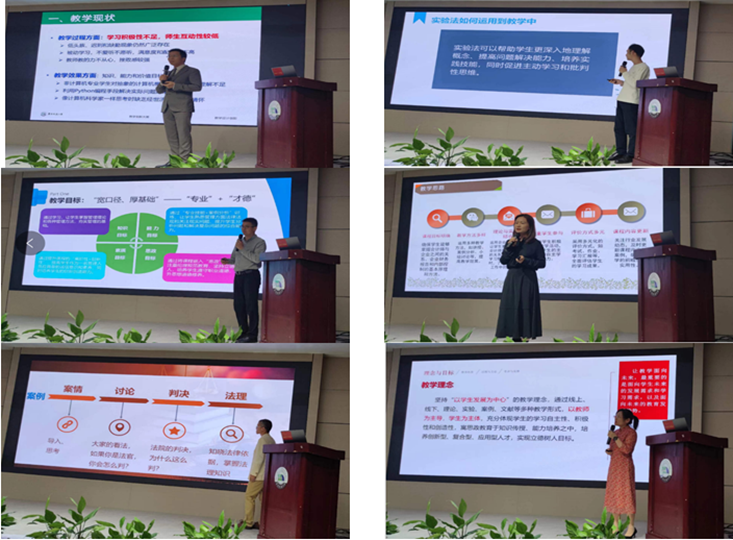 大赛分为课堂教学实录视频、教学创新成果报告和15分钟的教学设计创新汇报三个部分。10月10日至10月11日,我院邀请校内外专家对参赛教师的课堂教学实录视频和教学创新成果报告进行了线上评审,专家们从教学理念、课程思政、教学过程、教学效果、视频质量以及教学实践经验与反思、体现教学创新成效等几个方面进行评审打分;10月12日下午现场比赛环节,参赛教师结合所授课程特点,从理念与目标、内容分析、学情分析、过程与方法、考评与反馈、设计创新等六个维度进行现场展示。通过专家们综合评审,最终罗瑞荣老师荣获一等奖,周燕芳、周晨松荣获二等奖,石俊、周广为、王胜伟、陈超、盛长文、刘杨晖、万科荣获三等奖。