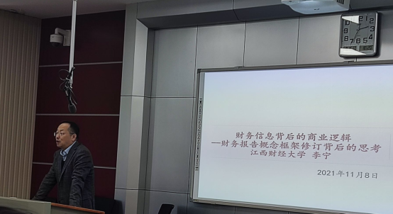 应学院邀请,2021年11月08日下午14:30,江西财经大学李宁教授在北区31栋教学楼634教室,为华人策略研究论坛网站会计专业研究生带来了一场题为《财务信息背后的商业逻辑——财务报告概念框架修订背后的思考》的学术讲座。