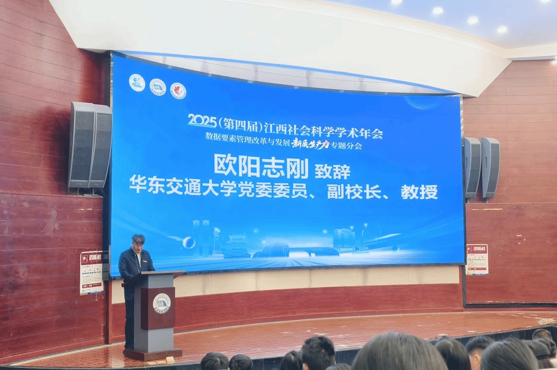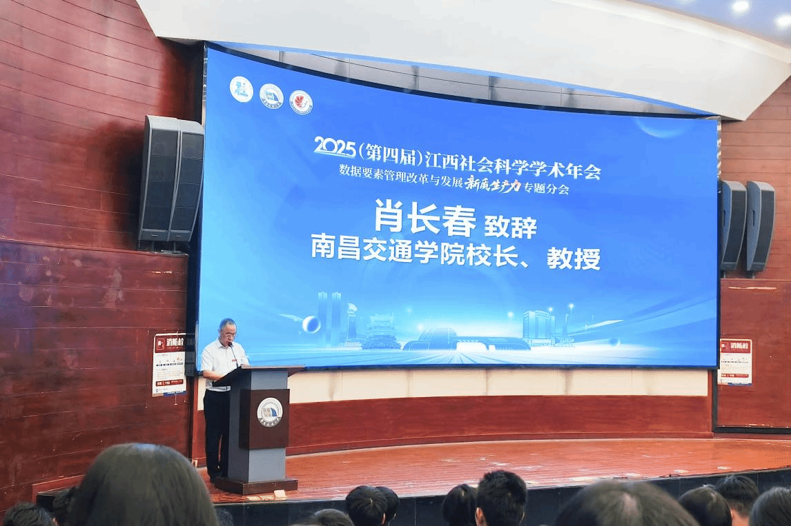 10月19日,由江西省社会科学界联合会主办,华东交通大学华人策略研究论坛网站、江西省哲学社会科学重点研究基地“经济数字化转型研究中心”承办,南昌交通学院商学院、《老区建设》编辑部、华东交通大学江西人才与产业融合发展研究院、上高县委组织部、上高高新园区管委会共同协办的2025(第四届)江西社会科学学术年会“数据要素管理改革与发展新质生产力”专题分会在我校举行。江西省社科联党组成员,副主席许璟出席开幕式并讲话,华东交通大学党委委员、副校长欧阳志刚教授出席开幕式并致辞,南昌交通学院校长肖长春教授出席开幕式并致辞。会议由华东交通大学我院党委书记余得生教授主持。