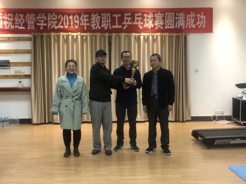 比赛秉承着公平、公正、公开的原则激烈而又有序的进行着。乒乓球在空中来回抛出优美的弧线,博得了一阵又一阵的喝彩声。现场的气氛十分的活跃,参赛选手们都以饱满的热情和高度的积极性,全身心的投入到此次比赛中,并且充分发挥了“敢打敢拼”的进取精神。经过了3个小时的激烈角逐,各系室代表队团结协作,奋勇争先,最终办公室代表队荣获本次比赛的冠军,会计系代表队荣获亚军,经济系代表队荣获季军。