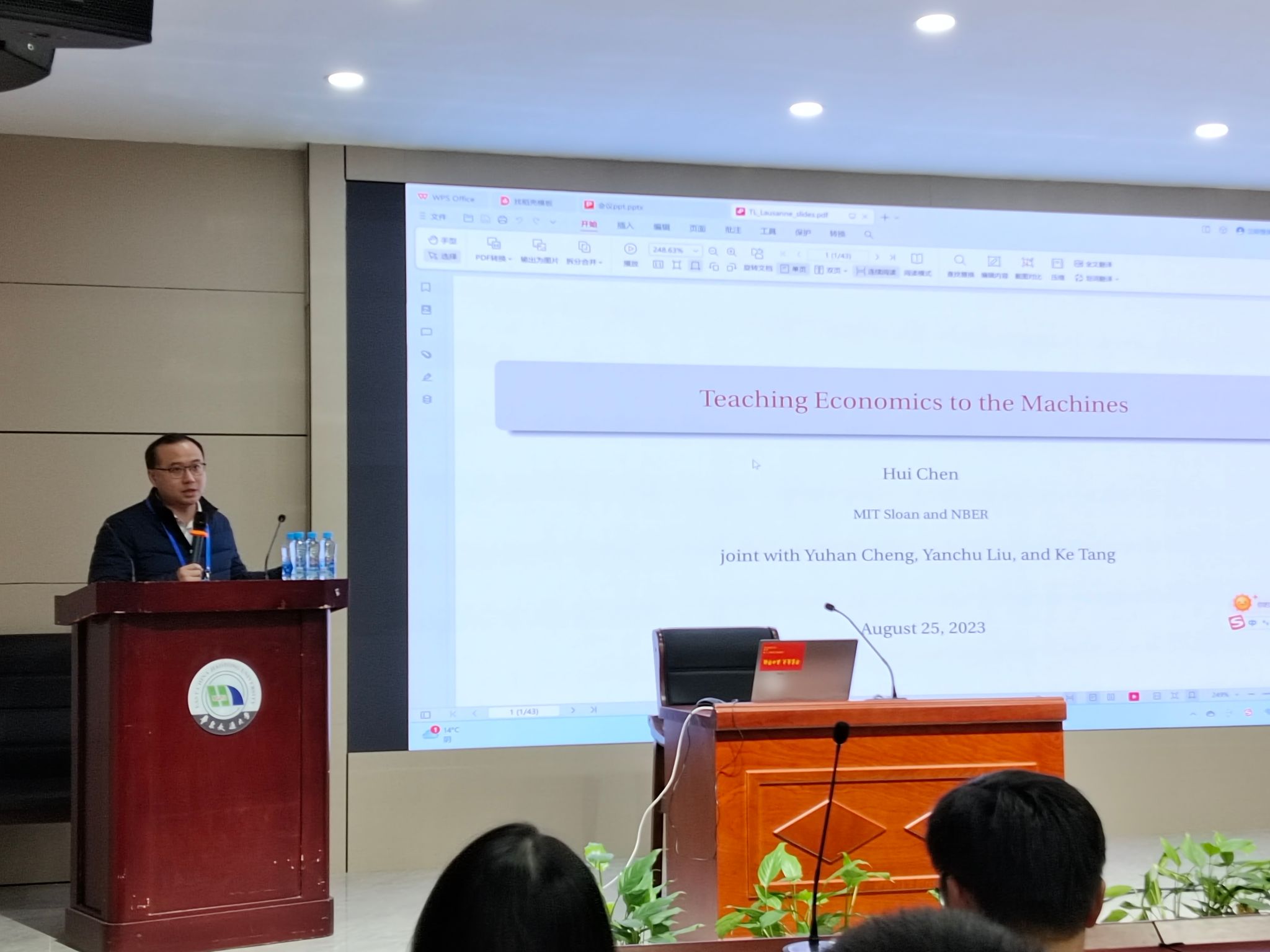 在分论坛报告环节,中山大学岭南学院副院长刘彦初教授带来主题为“Teaching Economics to Machines”的精彩报告。刘彦初教授首先通过引用统计学家George E. P. Box的名言“所有模型都是错误的,但有些是有用的”,将大家带入思考;然后通过讲述AlphaGo和AlphaGo Zero学习围棋的例子,向大家揭示了数据驱动方法和理论驱动方法存在的不足,指出应将两种方法结合起来进行迁移学习;最后讲述自身的研究报告,为大家展示应如何通过迁移学习用经济学理论指导机器学习,并鼓励大家进行深度学习,往这一方向深耕。