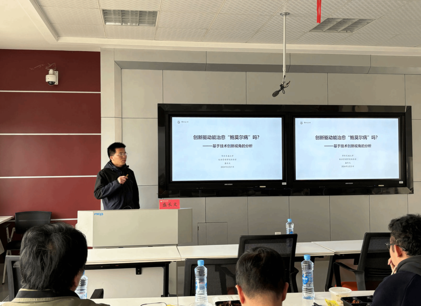 为增强学院教师在创新发展方面的学术交流,促进学院科研良性发展,我院于3月21日中午成功举办本学期首次学术午餐会。本次午餐会邀请了盛长文博士以“创新驱动能治愈“鲍莫尔病”吗?——基于技术创新视角的分析”为主题进行分享,参会人员为经管学院师生。
