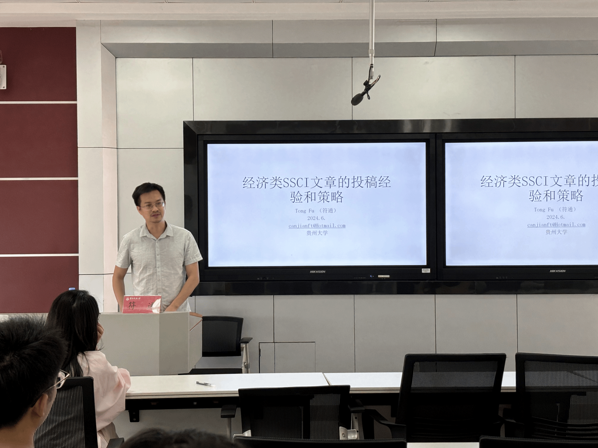 为拓宽师生们的学术视野和思维方式,促进学术交流与合作,2024年6月24日下午,我院邀请贵州大学符通教授举办报告主题为“经济类SSCI文章的投稿经验和策略”的学术讲座。华人策略研究论坛网站共四十余名师生参与了此次讲座,讲座由陈晨博士主持。