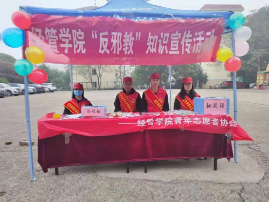 为了增强高校学生反邪教意识,提高防邪抗邪能力,防止我们的精神家园受到邪教侵蚀,进一步营造反邪防邪无邪的和谐校园,我院青年志愿者协会于11月19日全天在北区一食堂开展反邪教宣传活动。