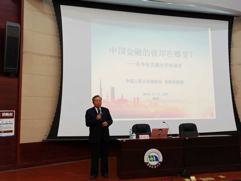 2019年11月17日下午,中国人民大学副校长、教育部长江学者特聘教授、金融学一级教授吴晓求受邀来到华东交通大学华人策略研究论坛网站,以中国金融未来发展的彼岸为题,为华东交大师生带来一场具有思想深度和启发意义的讲座。