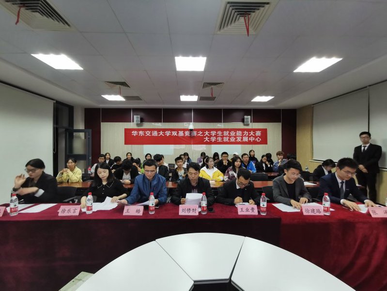 为给广大在校同学提供实用的求职经验,普及就业面试方面的知识,11月11日晚于教31栋举行了2019年华东交通大学双基竞赛之大学生就业能力大赛决赛。我院学工办主任兼团委书记刘修财、招生就业处就业科王业贵、我院就业指导老师王皓、初远定制总经理徐建路、江西邦正科技有限公司运营总监徐乐言、中公教育老师张晶以及链家地产人力资源师张洋作为评委出席本次大赛。