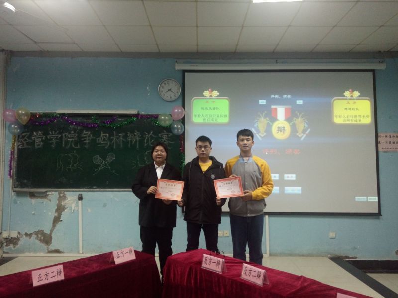 比赛结束后,评委们进行述票环节,他们就辩论技巧、事例论据、现场风度对双方的优点和不足做了精彩点评,并且更深层次地阐释了辩题。最终,反方国贸二班代表队取得了胜利,荣获“争鸣杯”一等奖,正方金融二班获二等奖,反方二辩张巳瑾获得“最佳辩手”称号,本届“争鸣杯”辩论赛决赛在同学们热烈的掌声中圆满落下帷幕。