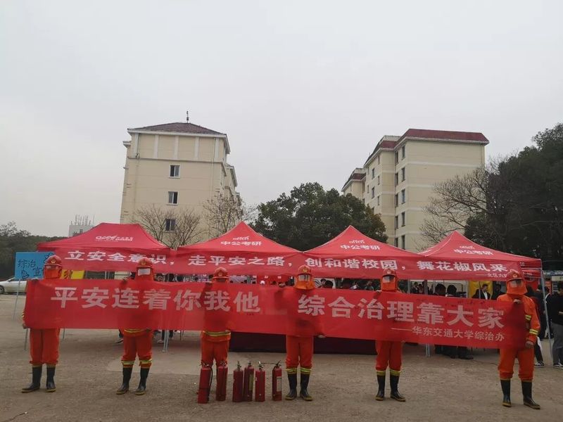 活动现场宣传形式多样、内容丰富。保卫部人员现场发放调查问卷,同学们填完即可领取小礼品。通过填写问卷检验同学们的安全意识,进一步完善安全知识,增加活动的广度和深度。此外,活动现场还组织进行了舞蹈表演,同时保卫部人员穿上娃娃套装和同学们一起互动,相处融洽,寓教于乐,增添摆摊活动的乐趣。设立留言墙、许愿墙和展览板,让现场同学在横幅上签字支持。宣传展板图文并茂,形象生动地向师生宣传学校综合治理、安全整治的成效以及各类安全防范知识。在消防器材展示环节,现场准备了灭火器、消防护服、高压水枪等消防用具,现场指导使用方式,与观众互动,让观众亲手使用,更好地帮助他们掌握使用方法,营造共建共治共享的良好氛围。活动结束后,相关学院进行了场地的清理,同时开总结会总结活动经验。
