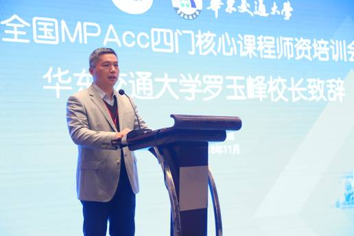 罗玉峰校长代表华东交通大学对参与培训会的专家们表示诚挚地欢迎,并热烈祝贺本次培训会的顺利召开。罗校长表示“希望大家通过培训会这个平台,加深了解,相互学习,学以致用,不断提高自身综合素质,努力使自己成为教学领域的行家里手。同时,希望与会专家多关心和支持我校MPAcc项目的发展,多提出宝贵的意见和建议。”
