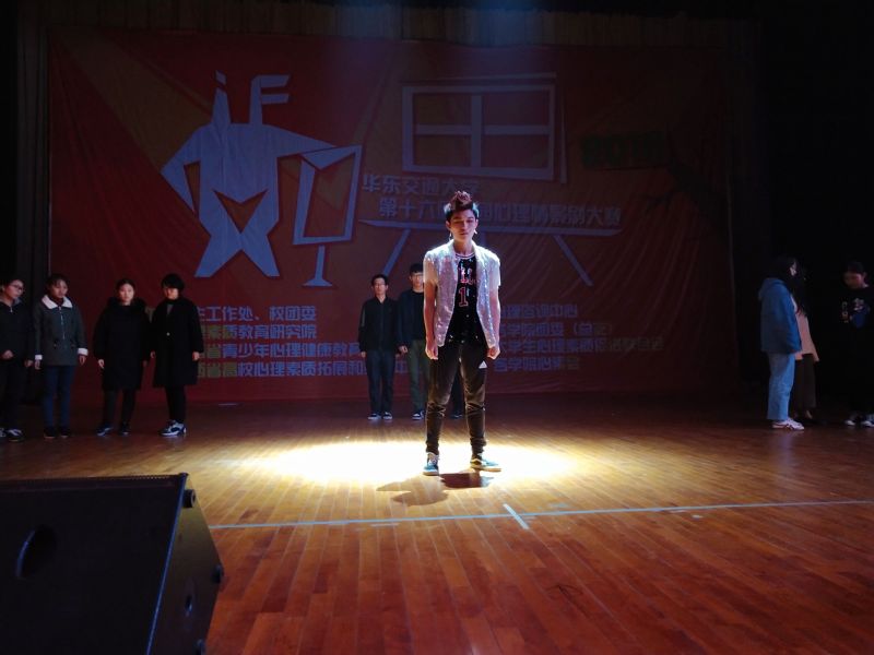 比赛开始前,校心联会的同学们带来了一场精彩的舞蹈,带动现场气氛。在主持人简短的介绍之后,大赛正式拉开帷幕。比赛队伍陆续上台表演,为观众们带来一场视觉盛宴。本次比赛一共有十六支队伍参赛,我院代表队于第二位出场。演员们身着演出服装,头戴面具,在舞台上倾情演绎心理剧《如果世界没有我》。演员们的一举一动都透露着正义与邪恶的较量,展示着世俗与脱俗的碰撞,引得现场观众们屏息凝神,沉醉于演绎之中。