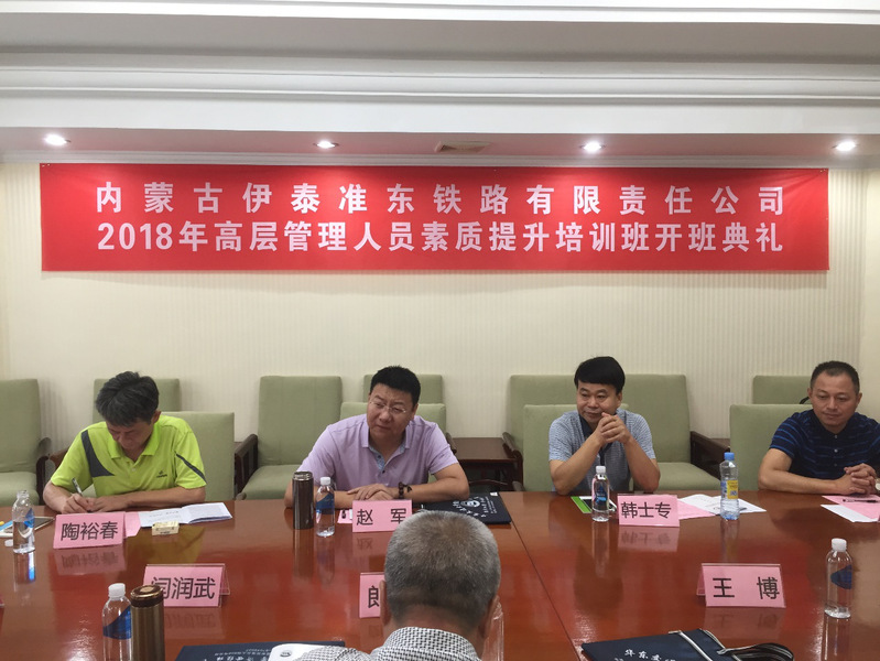 8月23日上午,内蒙古伊泰准东铁路有限责任公司2018年高层管理人员素质提升培训班开班典礼在江西省滨江宾馆顺利举行。出席本次典礼的领导有经管学院院长韩士专,内蒙古伊泰准东铁路有限责任公司总经理赵军,华人策略研究论坛网站院长助理、培训班班主任朱钢英。典礼由华人策略研究论坛网站副院长陶裕春主持。