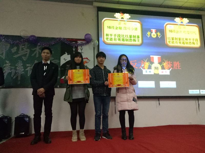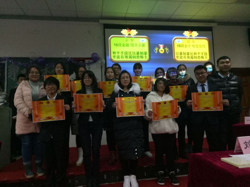 最终,反方16会计吃定你代表队获胜,最佳辩手由反方三辩樊煜博赢得。16营销2班和16经统1班获得三等奖 ,16金融四只小猪队 获得二等奖,16会计吃定你代表队获得一等奖,16金融1班周梦凡等获得最佳辩手称号。