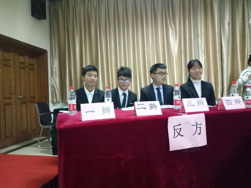 比赛一开始就火药味十足,双方在开篇立论环节阐述己方观点时与实例相结合,引经据典。攻辩环节中双方在提问时将对方辩友步步相逼,丝毫不肯示弱。自由辩论环节同样是高潮迭起,双方紧紧抓住对方辩论时的漏洞,进行了猛烈的抨击。比赛进入总结陈词阶段。双方清晰的思路和精彩的陈词给我们留下了深刻的印象。这一场辩论赛可谓是惊心动魄,群雄舌战展熊风,争锋相对辩天下。