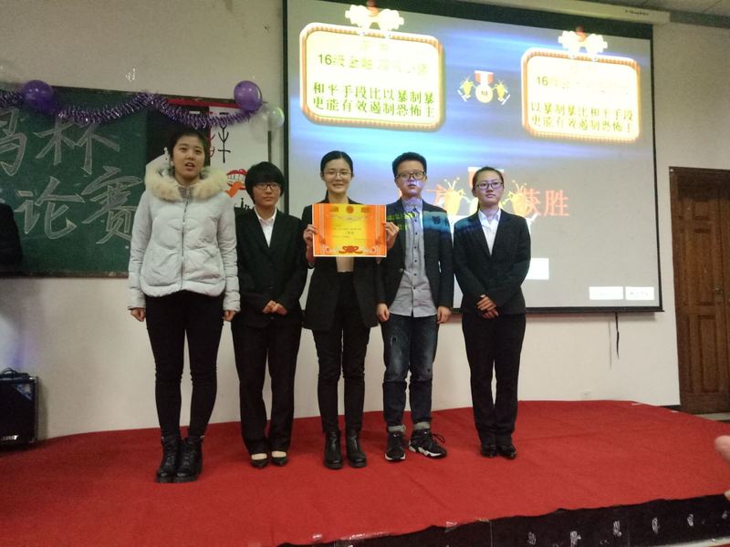 经过初赛、复赛的几轮比试,16金融四只小猪代表队和16会计吃定你代表队脱颖而出进入决赛。正方16金融四只小猪代表队的观点为“和平手段比以暴制暴更能有效遏制恐怖主义” ,反方16会计吃定你代表的的观点为“以暴制暴比和平手段更能有效遏制恐怖主义” 。