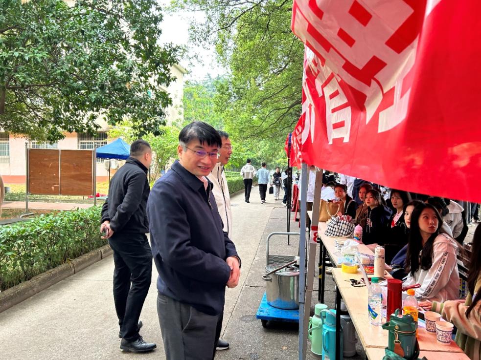 雨意濛濛,淅淅沥沥。10月27日的校运会,恰逢小雨。在丝丝凉意中,院党委书记王朗、院长欧阳志刚、院党委副书记刘文坚、学工办主任兼团委书记赵昕宗亲自来到南区田径场,慰问参赛运动员。