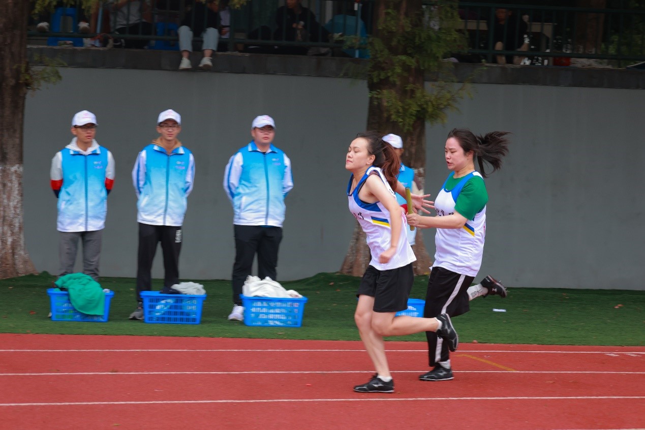 利剑出鞘,今朝试锋芒。接力赛,锻炼的是运动员的速度、技术和默契配合。为了备战这次比赛,运动员黄芳、韦柳林、尹欣、张雅婷在田径场上开展多次训练。期间,为了克服出现的各种困难,她们细细思索原因,调整方案,主动加训。终于,在今年的运动会上,展现出过人的实力,斩获女子组4×100米第一名。