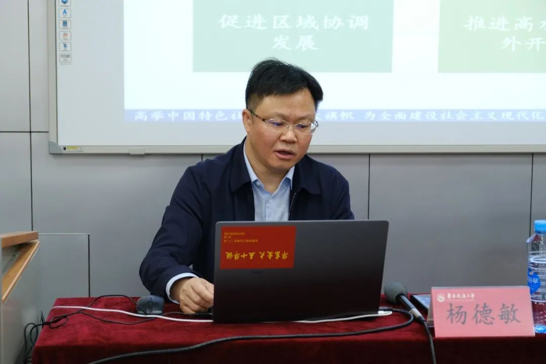 杨德敏教授指出,党的二十大是一次高举旗帜、凝聚力量、团结奋进的大会,为新时代新征程党和国家事业发展、实现第二个百年奋斗目标指明了前进方向、确立了行动指南。围绕党的二十大报告中提出的“过去五年的工作和新时代十年的伟大变革”、“新时代新征程中国共产党的使命任务”、“中国式现代化的本质要求”等内容,杨德敏教授对党的二十大精神进行了全面、系统、深入、准确的阐述和解读。
