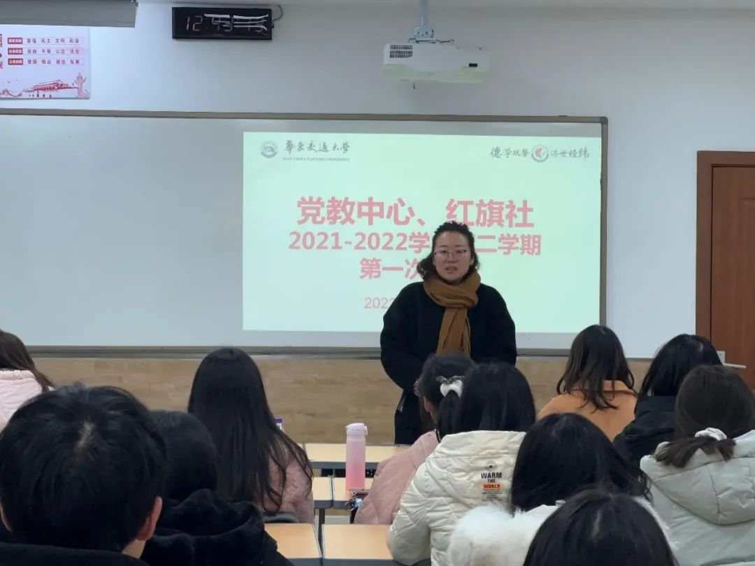 2月22日,党教中心和红旗社在31栋教学楼311B教室召开2021-2022学年第二学期第一次例会,总结上学期各部门工作成果,布置新学期各部门工作安排。本次会议由院党委组织员苑莹老师主持,红旗社和党教中心全体人员参加此次例会。