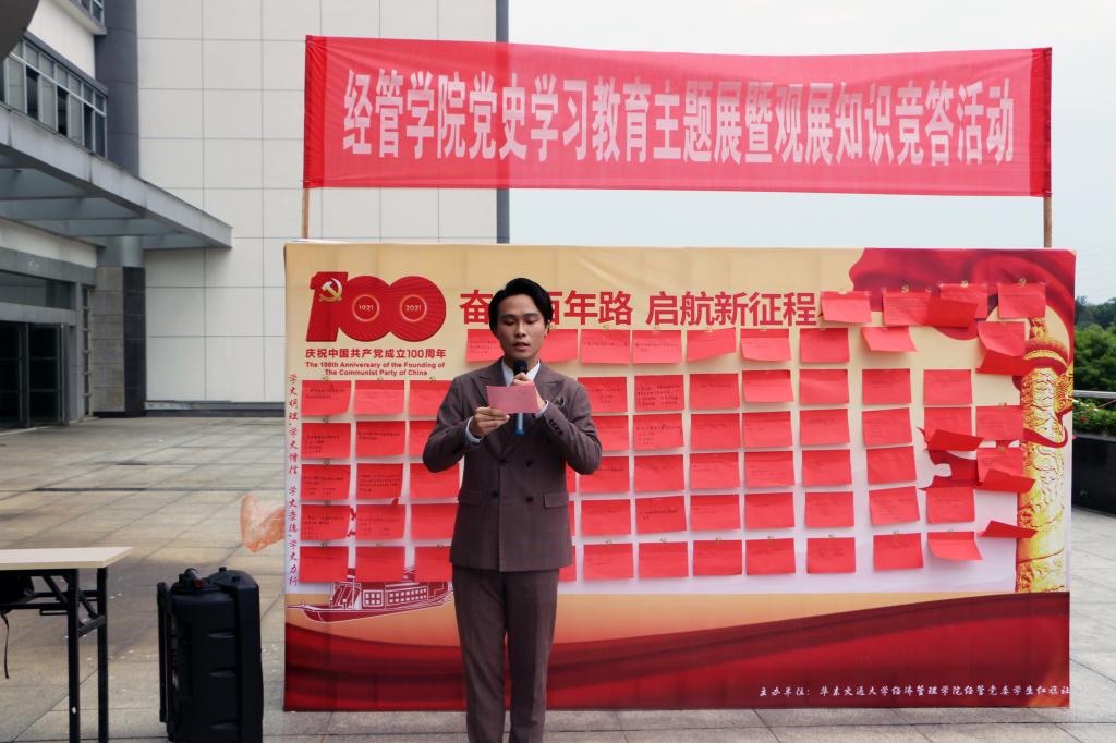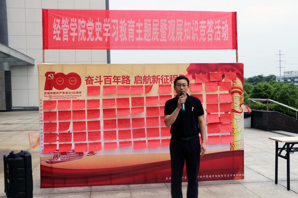 据悉,经管学院结合庆祝中国共产党成立100周年开展内容丰富、形式多样、覆盖面广的党史学习教育,围绕“寻、温、赛、做、讲、检”即开展一次红色走读活动、重温一次入党誓词、开展一系列党史学习教育主题活动、讲授一次党史专题党课、召开一次党史学习教育专题组织生活会等主题实践活动,推动学习内容具体化、学习方式特色化、学习实践成果化。持续深入推动党史学习教育落地见效,教育引导全院师生学史明理、学史增信、学史崇德、学史力行,以优异成绩迎接建党100周年。