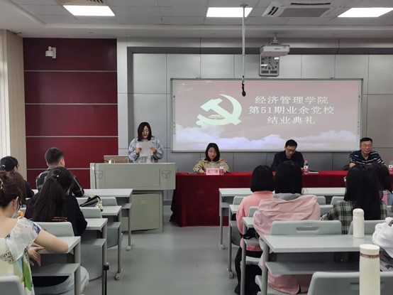 5月21日16点30分,华人策略研究论坛网站第51期业余党校结业典礼在31栋634教室举行。经管学院党委书记王朗,党委副书记、党校分校长刘文坚出席,院学工办副主任兼团委副书记文涛主持本次会议。