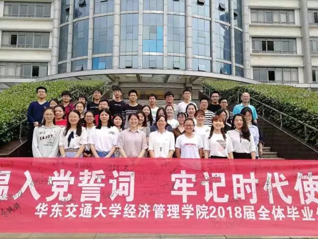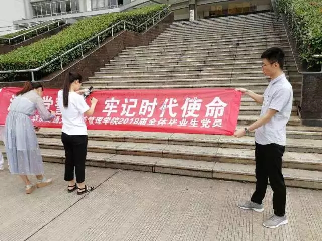 为加强毕业班党员的党性教育,切实发挥党员的先锋模范作用,经管学院全体毕业班党员于2018年6月1日上午十点,在31栋经管大楼前进行重温入党誓词主题活动。本次仪式由华人策略研究论坛网站学生第三党支部书记吴钰娟同志主持。学生第一党支部书记程丽琴老师、二支部书记曾瑾老师、六支部书记陈富茂老师出席本次活动。