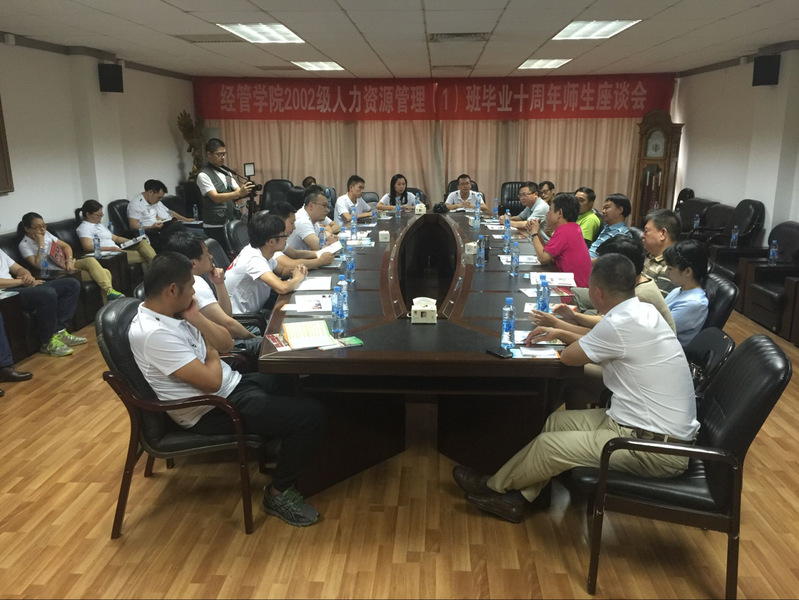 10月3日,经管学院2002级人力资源管理1班毕业十周年师生座谈会顺利举行。华东交通大学校友秘书处处长罗侃,学工会副主席万国栋,经管学院常务副院长韩士专,副院长陶裕春,党委副书记曾友田,院长助理朱钢英参加本次座谈会。