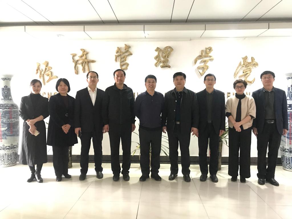 2021年3月26日下午,我院院长韩士专、党委书记王朗及其他党政班子成员与我院88级计统专业戴保民(右起第四位),中国铁建投资集团有限公司副总经理在学院就50周年校庆筹备工作展开讨论交流。会上,校友戴保民积极主动为校庆建言献策,并将应邀作为我院志刚讲坛嘉宾与在校师生交流分享。