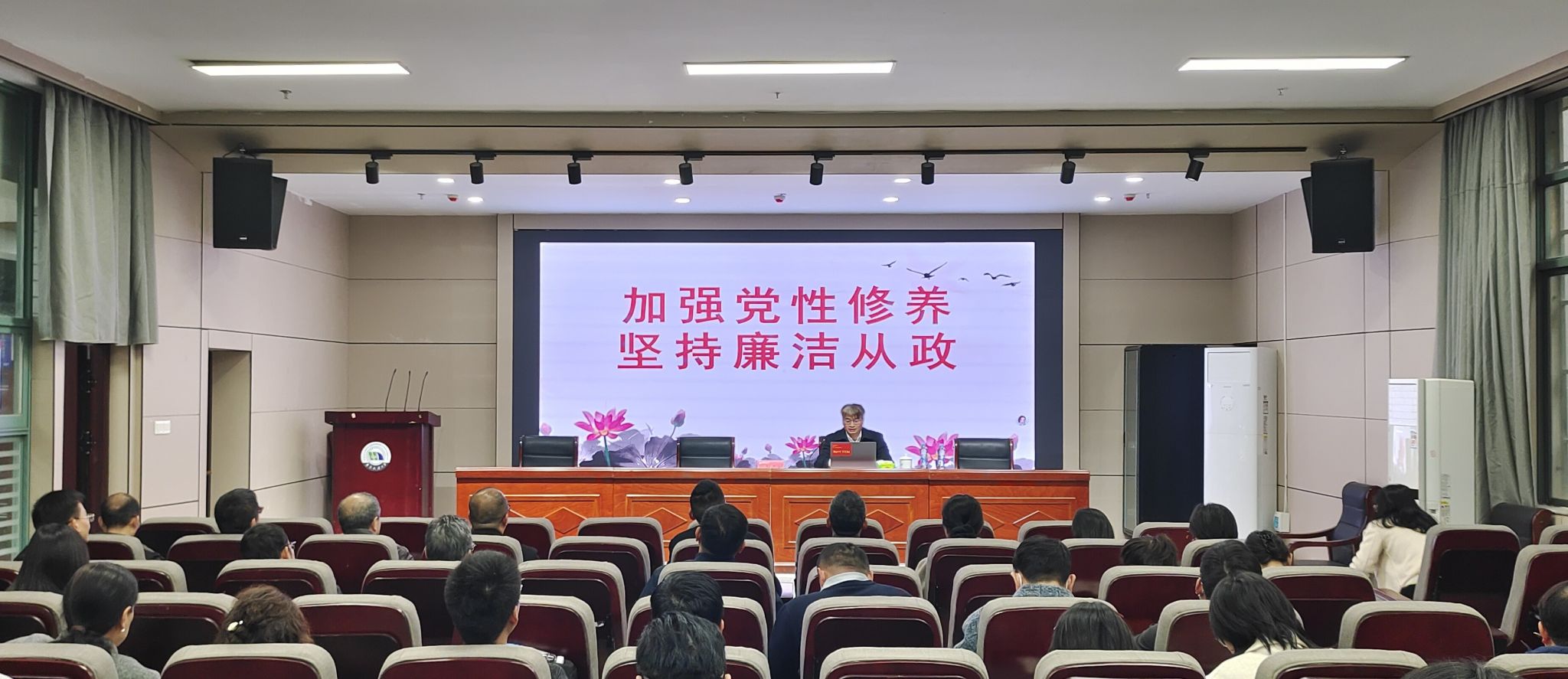 12月4日,校党委委员、副校长欧阳志刚为联系学院和分管单位党员干部,讲授了题为“加强党性修养,坚持廉洁从政”的专题廉政党课。