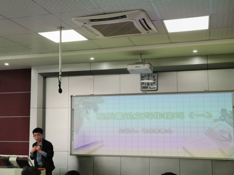 为进一步提高我院老师和各科研团队的理论研究水平,帮助他们更高效、高质量的撰写教育教学及学术研究方面的学术论文,9月24日下午,我院在31栋教学楼举办关于“高质量论文写作技巧”的学术讲座。本次讲座由我院副院长周才云主持,邀请江西师范大学财政金融学院讲师钟成林博士主讲,我院全体教师积极参与聆听学习。