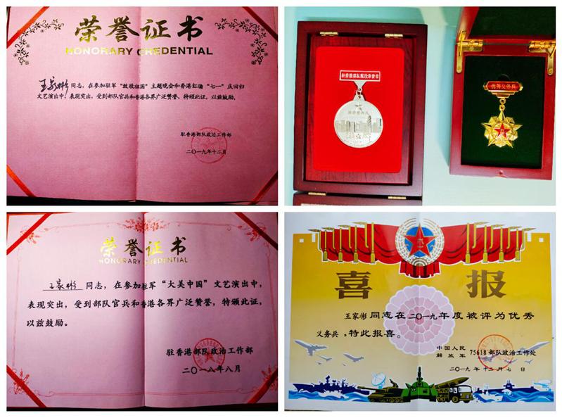 由于香港极端暴力局势的发展,全体驻港部队战士推迟退伍,但是他没有任何怨言,仍然积极开展工作,面对特殊时期更加繁重的公差勤务,值班战备,站岗放哨,也没有一点放松。所有的努力都没有白费,在年底的评功评奖中,荣获优秀义务兵嘉奖。