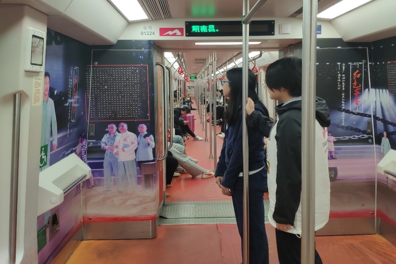 在去往八一馆的路上,“偶遇”红色家书主题地铁专列,师生党员们自主对该专列进行参观学习,传承红色基因,不忘使命担当。