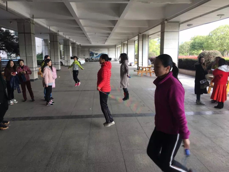 跳绳比赛中,女教职工们更是展示出个人的活力和运动魅力。