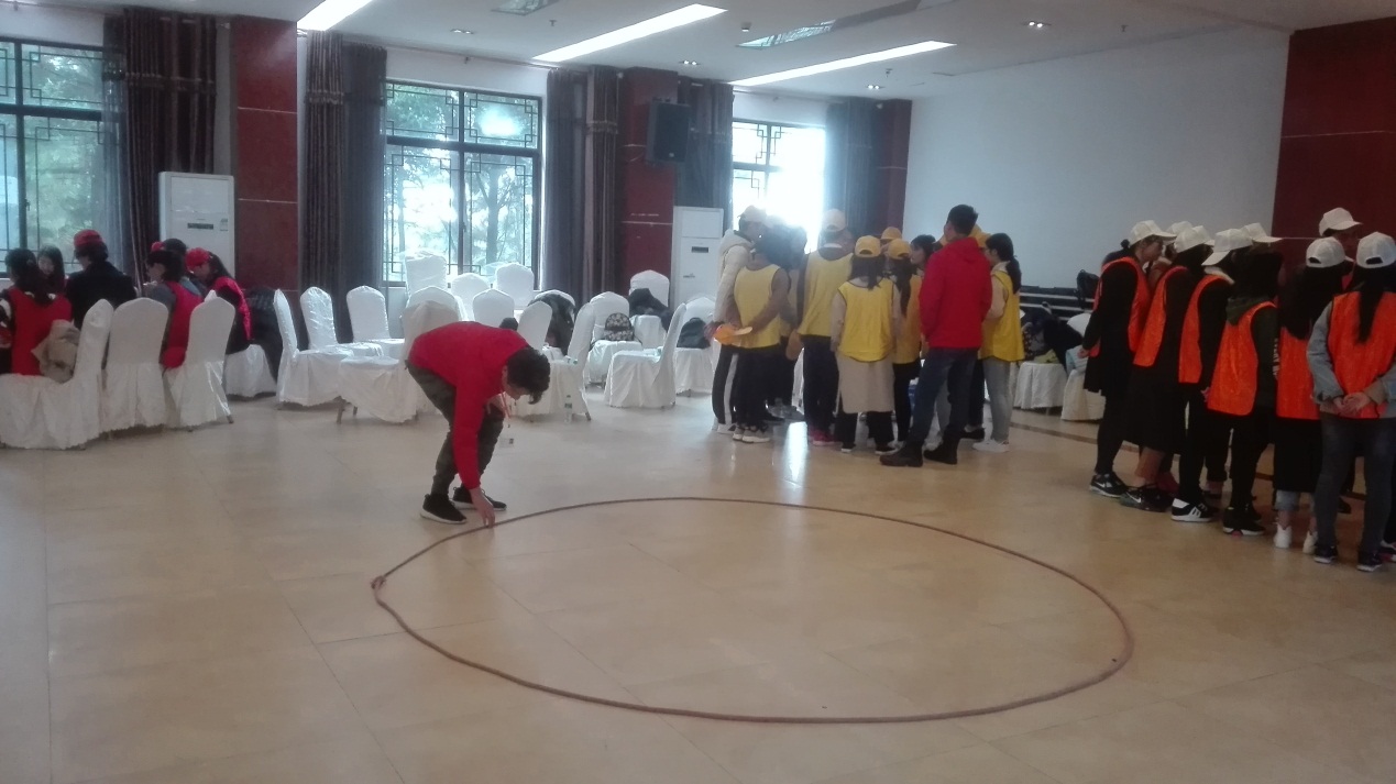 本次拓展活动包含跳兔子舞、团队展示、智力猜数、驿站传书、同舟共济、信任背摔、攀岩等活动。首先,由本次活动的教练介绍了活动规则,参与的同学们齐心协力,有序地完成了这几个游戏,整个素质拓展进行地十分顺利。