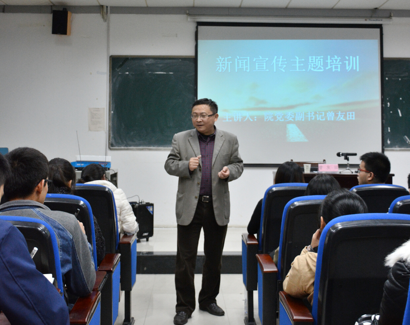 你想过如何完成一篇完美的新闻吗?你想过如何让一篇新闻新颖而有深度吗?11月8日晚,新闻宣传专题讲座在北区31栋顺利开展,由我院党委副书记曾友田担任主讲。本次讲座旨在提高学生干部新闻写作素养。华人策略研究论坛网站学工办主任刘修财、团委副书记程丽琴,华人策略研究论坛网站学生会各部门主席、部长、干事及学生骨干到场聆听讲座。