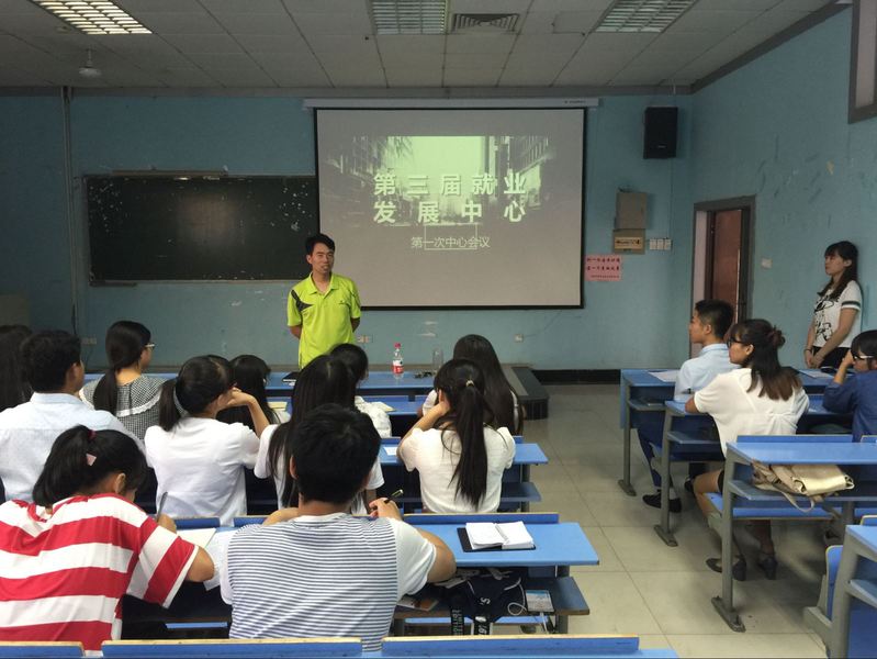 9月22日下午,第三届就业发展中心第一次会议于教31栋召开。学工办主任刘修财老师、副主任王皓老师、就业策划部部长高阳,就业信息部副部长杨铃、及就业综合事务部部长篮婧分别发表了讲话。