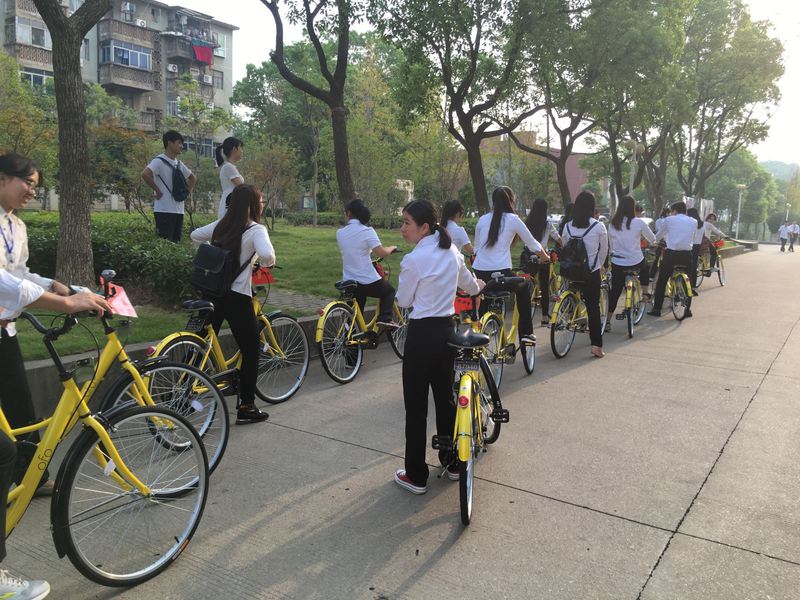 今天是9月3日,迎新工作的第二天,校园中出现了一批黄色自行车,它们出现后吸引到很多关注,也让经管学院的学子眼前一亮,成为校园一道靓丽的风景线。