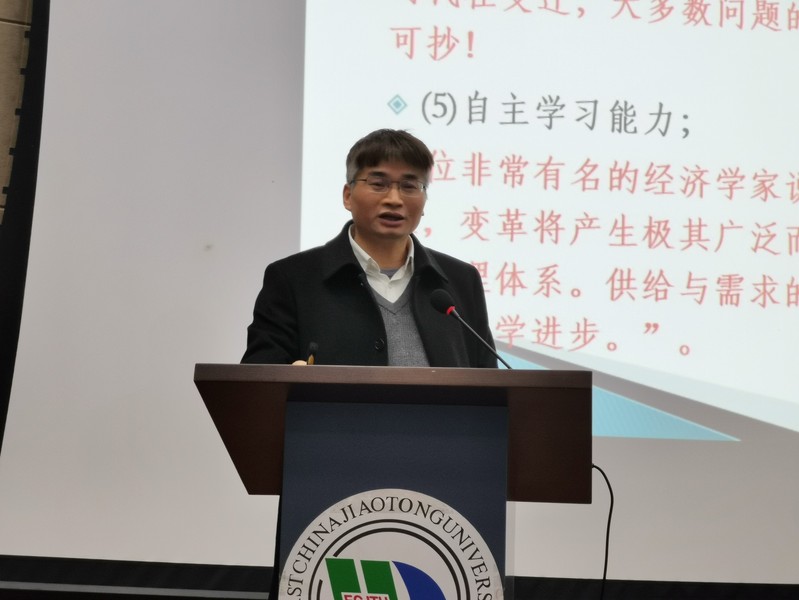 讲座伊始,欧阳教授从研究与创新能力的基本要求出发,立足学生本身的培养,着重对学生研究与创新的基本要求、学生的能力结构以及学生自身意识的培养等方面提出了相关建议。同时欧阳教授还和大家一同展开头脑风暴,探讨“蚂蚁金服是金融还是科技”,并且进一步发散思考,“江西为什么会被自贸区所包围”。欧阳教授通过学术交流的形式向大家讲授如何在学习中提高研究与创新能力,通过学院优秀校友的先进事迹展现经管历届学子的生机活力,激发同学们的发展动力和创造力。