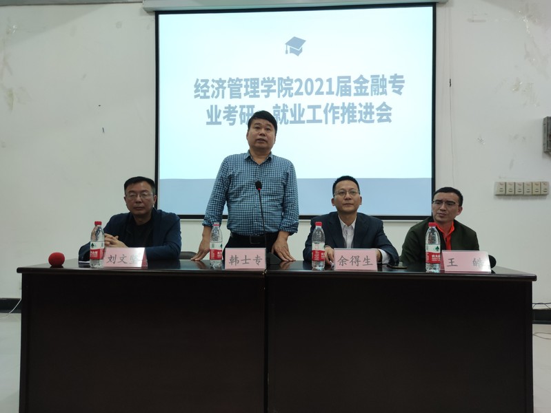 10月28日下午,为提高毕业生的考研就业热情,鼓励学生本校读研,吸引优秀人才,我院于31栋104教室顺利举办华人策略研究论坛网站2021届金融专业考研、就业工作推进会。院长韩士专、副院长余得生、院党委副书记刘文坚、院学工办副主任王皓出席本次会议,金融专业老师和21届金融专业全体学生参加会议。