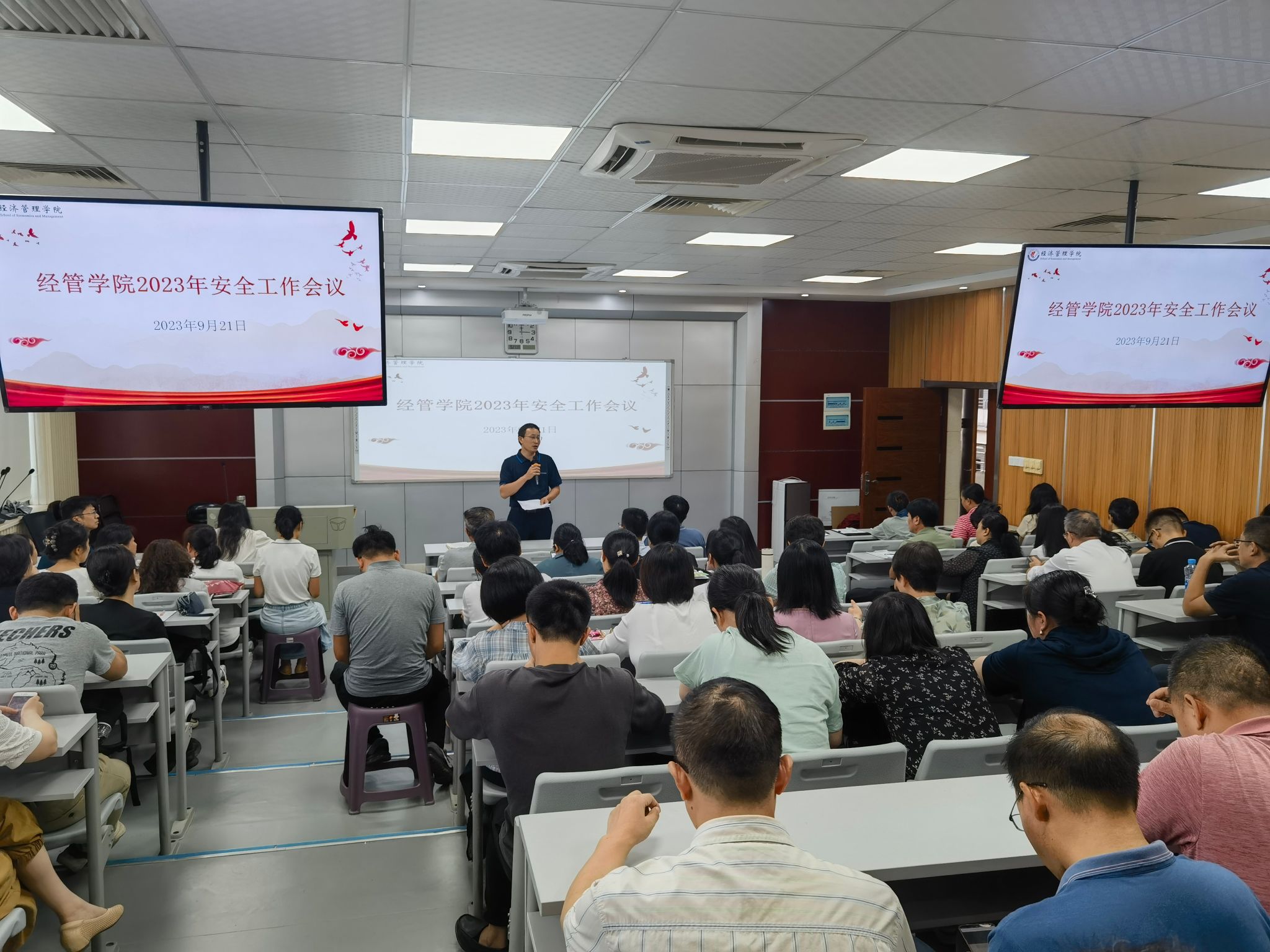经管学院召开2023年安全工作会议现场。