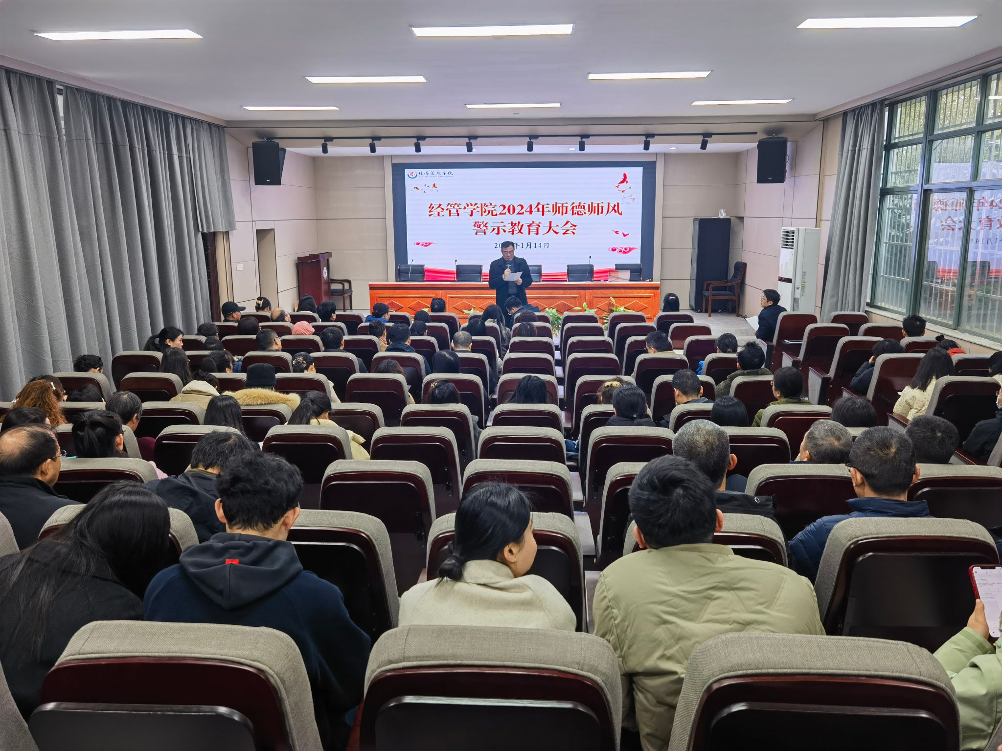 为进一步加强学院师德师风建设,提升教师思想政治素质和职业道德水平,1月14日,我院在教31栋104报告厅召开师德师风警示教育大会。会议由院党委书记余得生主持,全院教职工参加会议。