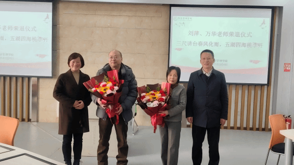 此次荣退仪式,既是对刘萍、万华老师教育生涯的致敬,也是学院对他们付出的铭记。相信两位老师的精神将激励着学院的年轻教师们不断前行,为学院的发展注入新的活力。
